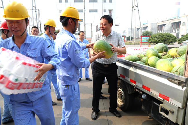8月4日,新安縣人大副主任、縣總工會(huì)主席王保敏,副主席梁松獻(xiàn)到萬(wàn)基鋁業(yè)一公司、二公司、萬(wàn)基金屬鈉公司的電解車間等高溫崗位進(jìn)行慰問,送上西瓜和礦泉水等降溫物品,使生產(chǎn)一線員工在炎炎盛夏中感受到了絲絲清涼。集團(tuán)公司黨委副書記、工會(huì)主席王宏偉,副總經(jīng)理韓鐵京等陪同。