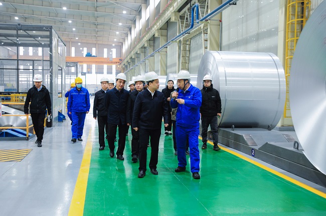 2月8日上午,河南省工信廳黨組書記、廳長李建濤, 省工信廳運(yùn)行監(jiān)測協(xié)調(diào)局局長洪波一行到萬基鋁加工、鋁鈦合金公司生產(chǎn)車間和2x60萬千瓦機(jī)組項(xiàng)目建設(shè)工地調(diào)研。洛陽市人大常委會(huì)副主任、新安縣委書記宗國明,萬基控股集團(tuán)黨委書記、董事長李躍民等陪同。