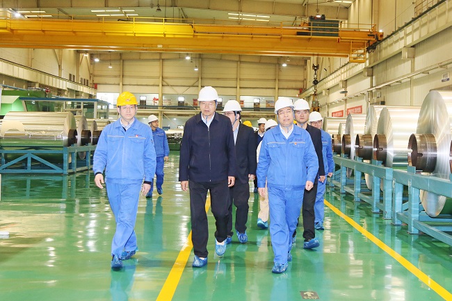 3月21日,洛陽國宏投資控股集團(tuán)黨委副書記、總經(jīng)理郭義民,黨委委員、副總經(jīng)理張軼一行到萬基鋁業(yè)公司、鋁加工公司、石墨公司、炭素公司、鋁鈦合金公司、板錠廠及2×60萬千瓦機(jī)組建設(shè)工地調(diào)研。黨委書記、董事長李躍民,副董事長、總經(jīng)理吳文君等陪同。