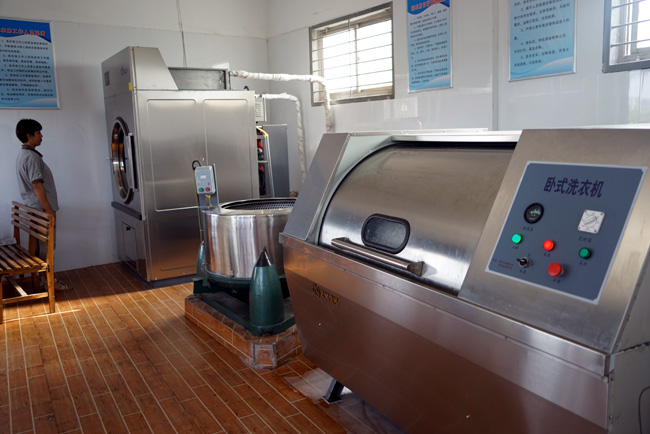 生產(chǎn)一線員工工作服臟得較快,有的在單位換洗,有的穿回家換洗,還有的懶于換洗,個(gè)別崗位由于工作環(huán)境較差,上班汗津津,下班臟兮兮,穿著不舒服,感覺不體面、無尊嚴(yán)。在管理提升、對標(biāo)學(xué)習(xí)活動中,集團(tuán)公司工會受中信重工集團(tuán)管理經(jīng)驗(yàn)的啟發(fā),提出了建設(shè)洗衣房、為職工免費(fèi)洗衣的建議。李躍民董事長在聽取匯報(bào)后,當(dāng)即拍板確定洗衣房建設(shè)方案,郭峰總經(jīng)理到現(xiàn)場查看后,確定先在一鋁、二鋁建設(shè)試點(diǎn),再在發(fā)電、鋁加工等單位推廣。工會、工程管理部、貿(mào)易公司經(jīng)過多次考察論證,從硬件設(shè)施到軟件管理,定方案、出措施,利用鋁業(yè)一公司門崗閑置房進(jìn)行土建、電氣、供水、供汽改造,經(jīng)過為期一周的緊張施工,洗衣房土建改造和設(shè)備安裝全部結(jié)束,共安裝70公斤滾筒式工業(yè)洗衣機(jī)、蒸汽烘干機(jī)和甩干機(jī)各1臺,配備專用洗衣液和消毒液,對工作服統(tǒng)一編號、分類洗滌、烘干消毒,讓職工穿得干凈體面,工作開心舒心。
