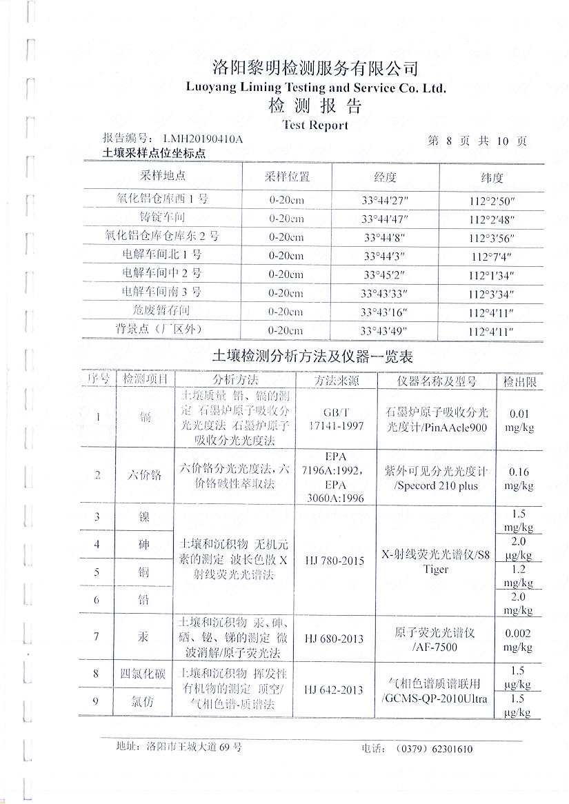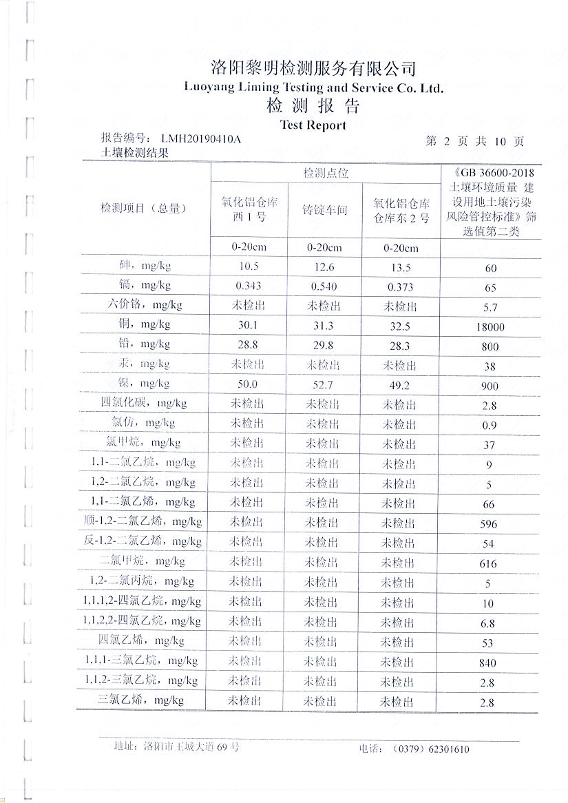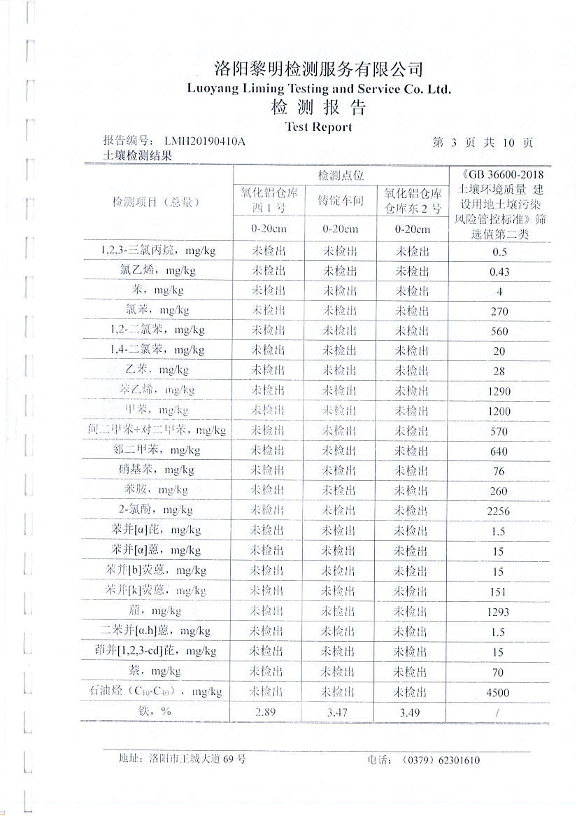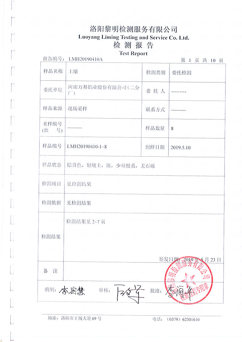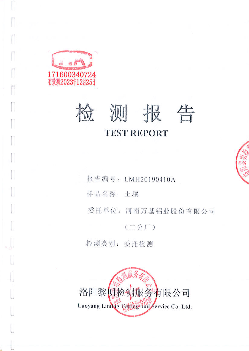 河南萬基鋁業(yè)股份有限公司(二分廠)土壤檢測報(bào)告公示