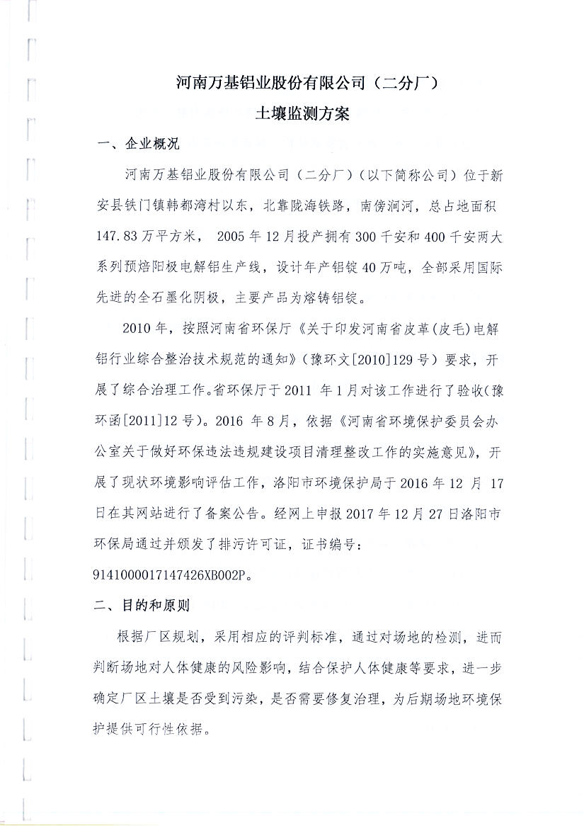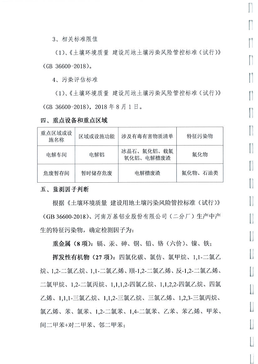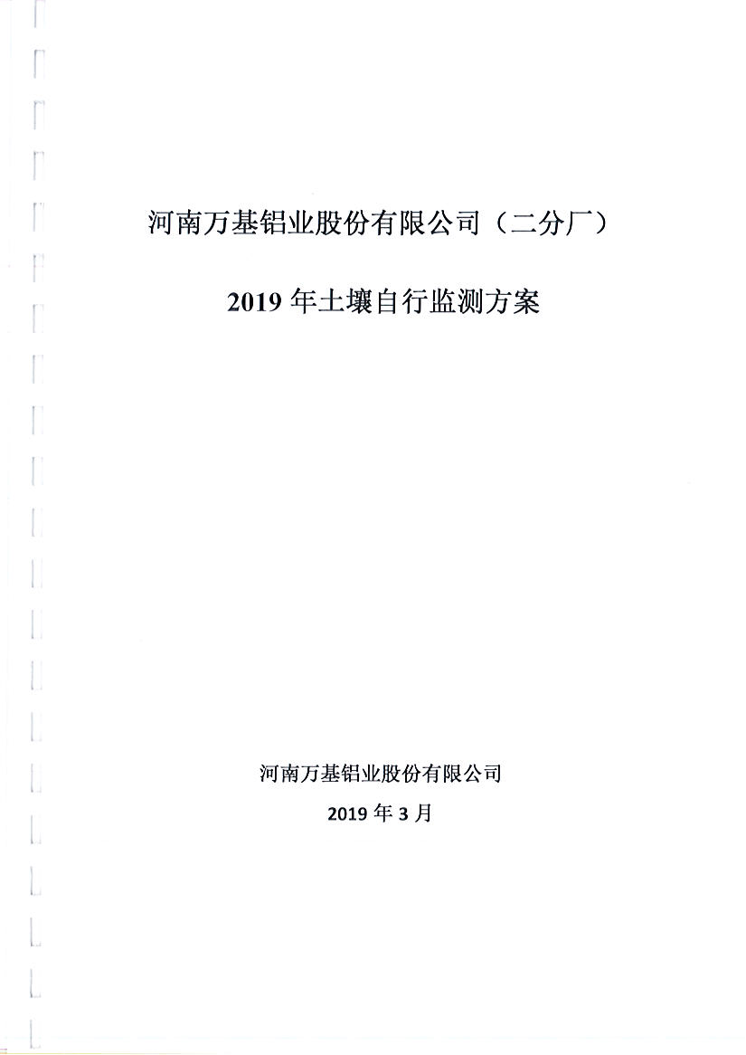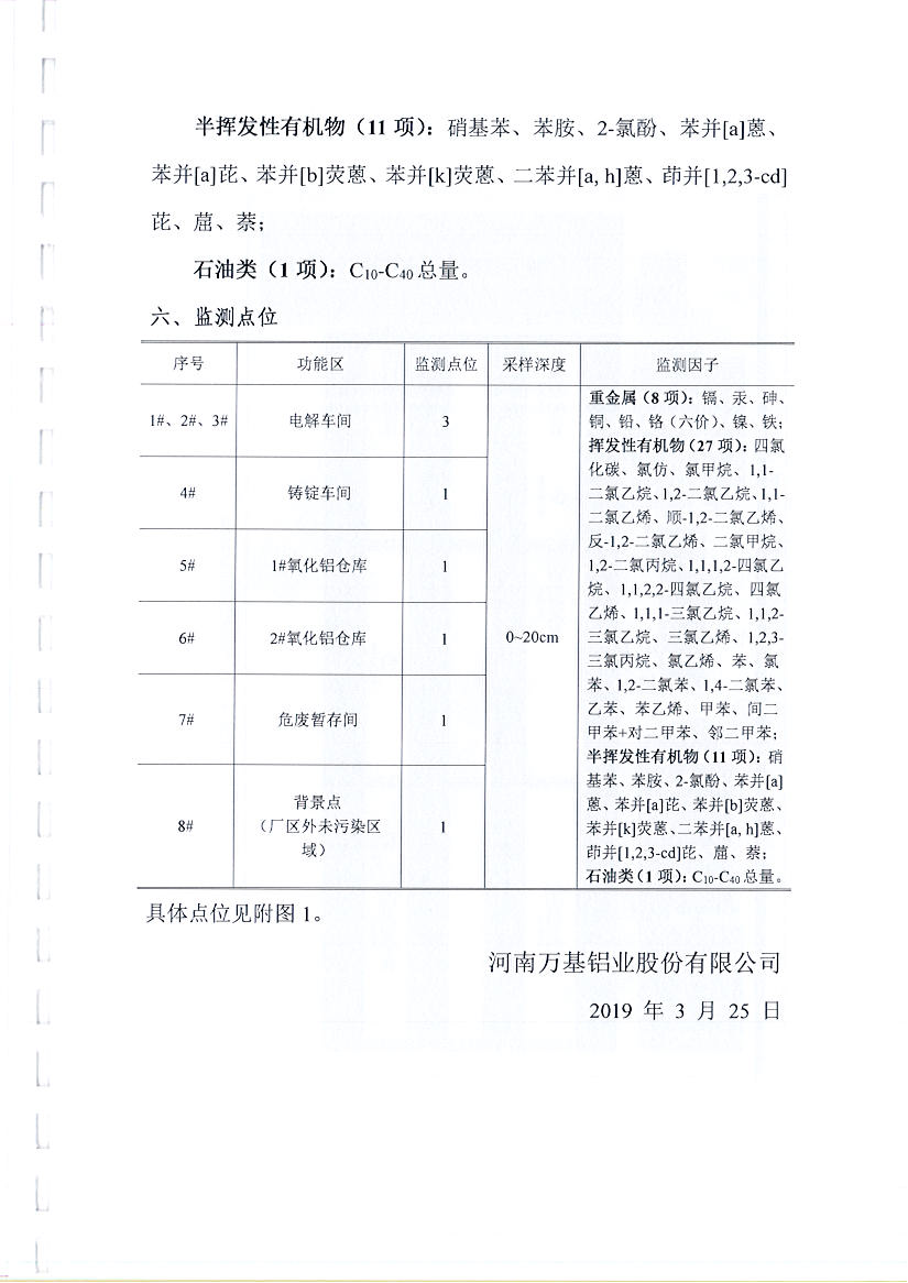 河南萬(wàn)基鋁業(yè)股份有限公司(二分廠)2019土壤自行檢測(cè)方案