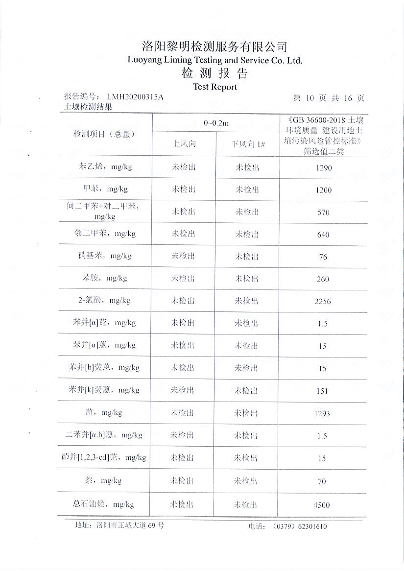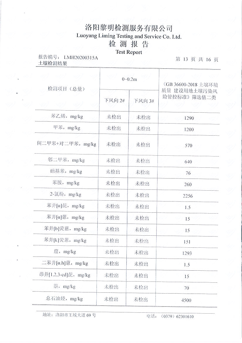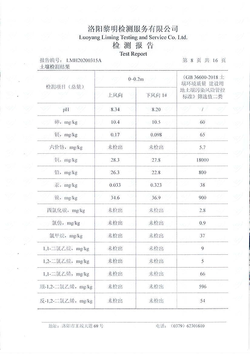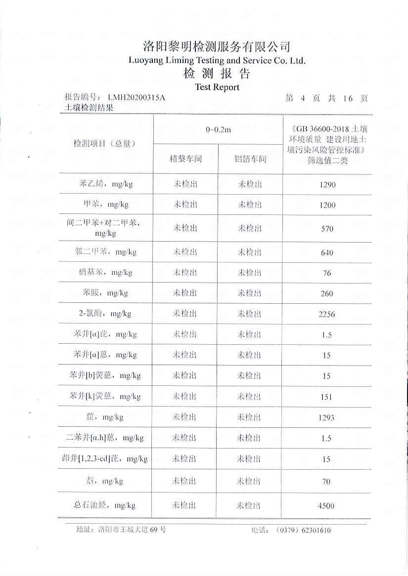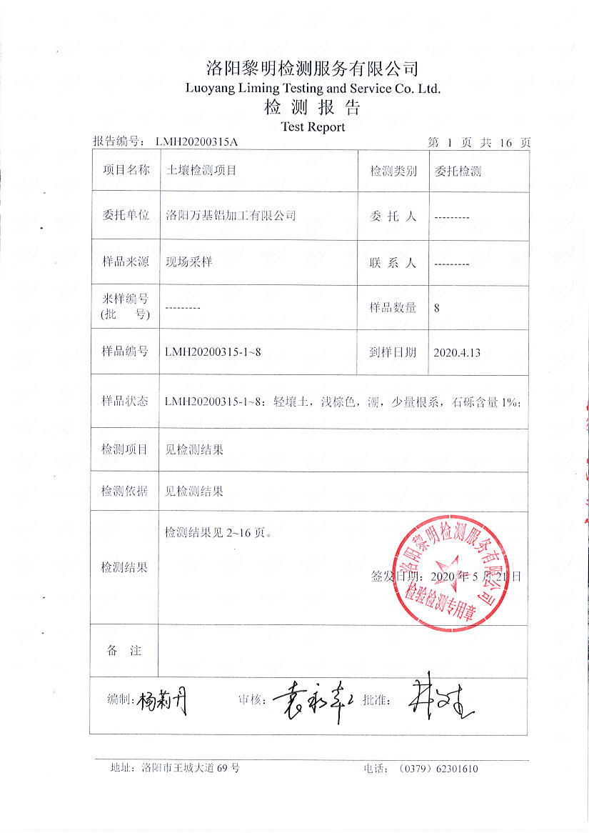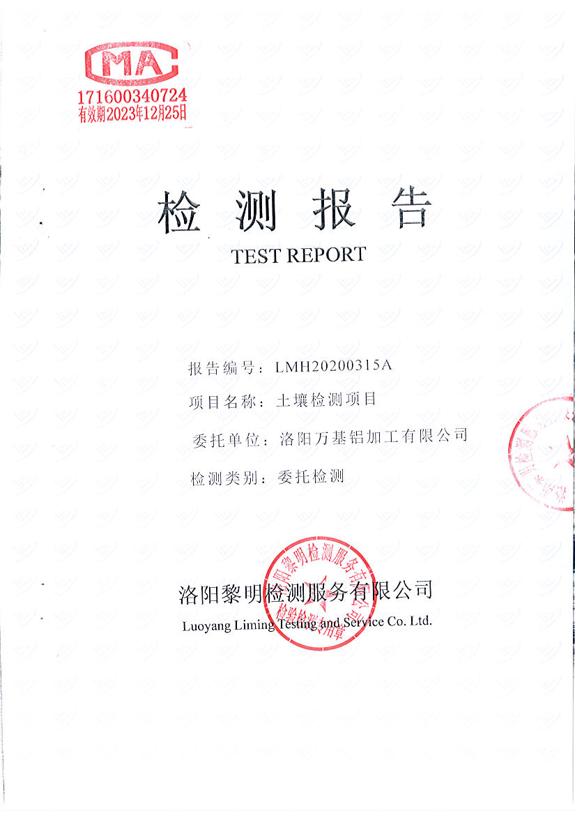 洛陽(yáng)萬(wàn)基鋁加工有限公司2020土壤自行檢測(cè)報(bào)告